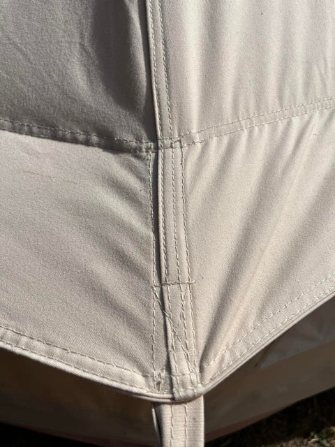 Onze tenten zijn gemaakt van een duurzame 320 g/m2 katoenmix. Dit maakt de tent weliswaar zwaar, maar ook bestand tegen vallende voorwerpen zoals takken.